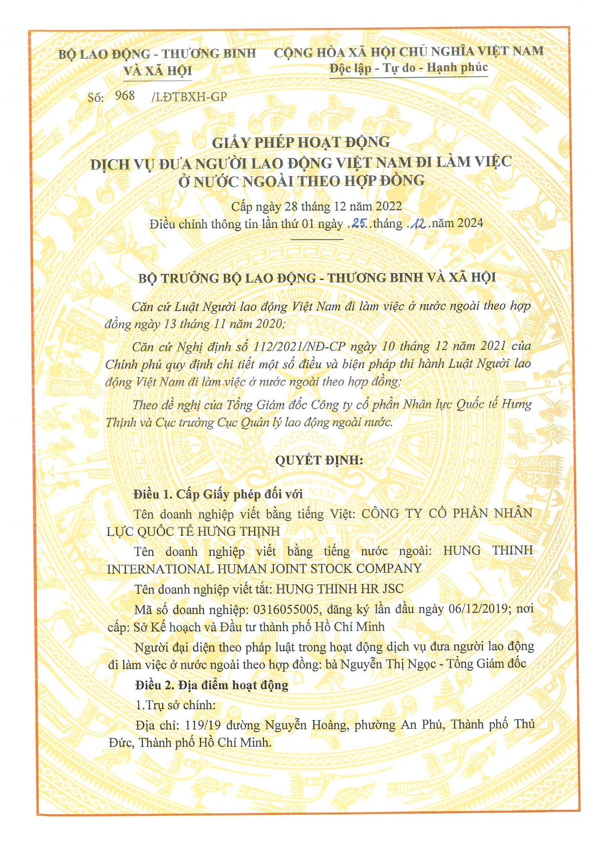 CÔNG TY CỔ PHẦN NHÂN LỰC QUỐC TẾ HƯNG THỊNH