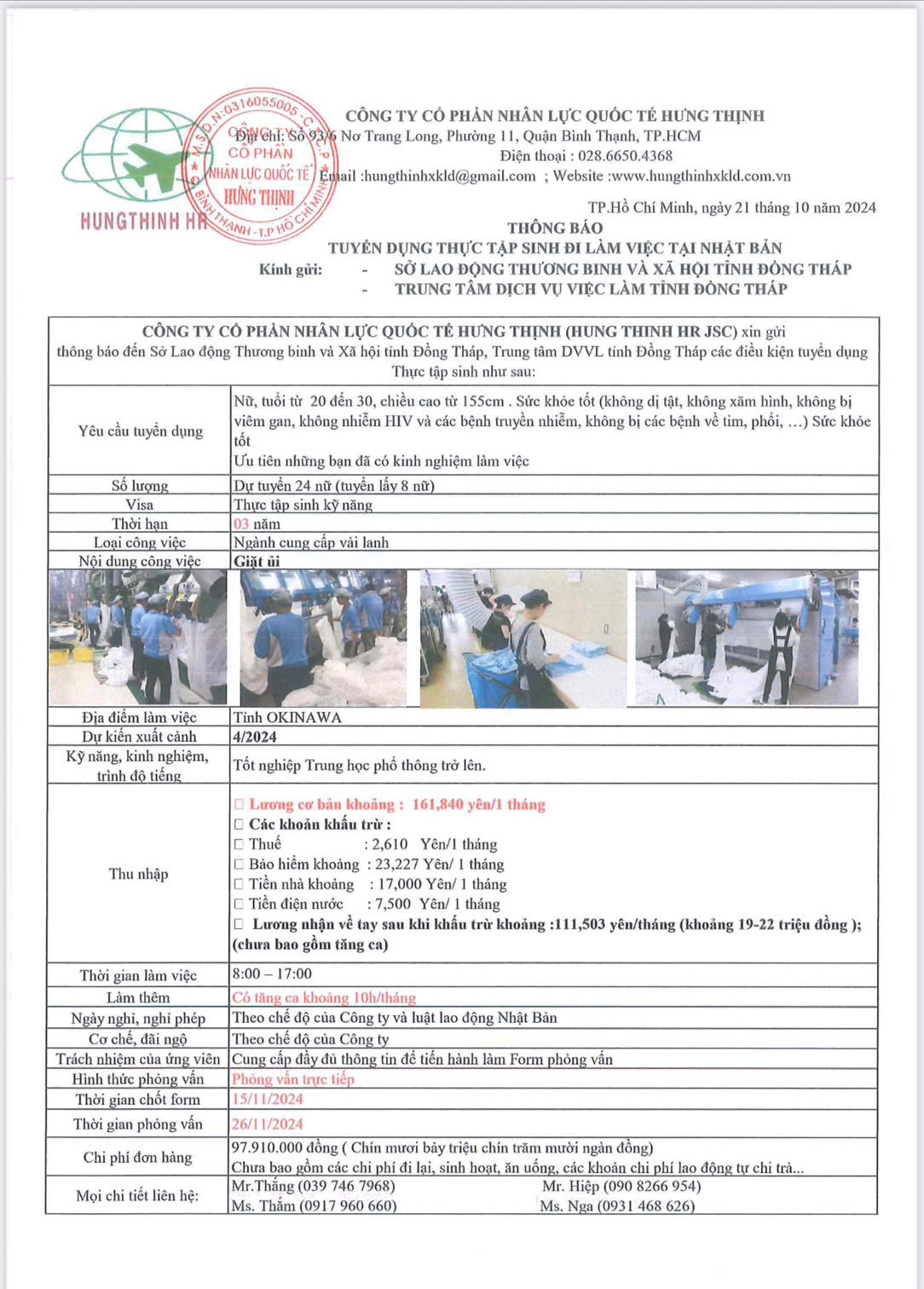Đơn hàng giặt ủi tại Nhật Bản là một trong những đơn tuyển nhận được nhiều quan tâm từ người lao động. Công việc giặt ủi được đánh giá là khá đơn giản, dễ thích nghi. Mức thu nhập của công việc tương đối ổn định, phù hợp với mọi lứa tuổi. Thực tập sinh tham gia đơn hàng giặt là Nhật Bản sẽ làm việc tại các công ty chuyên về dịch vụ giặt công nghiệp, bộ phận giặt là tại các khách sạn, nhà hàng tại Nhật Bản.